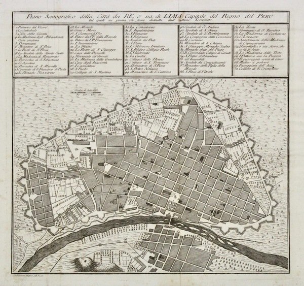 Piano scenografico della città dei Re ò sia di Lima capitale del regno del Perù tal quale era prima che fosse distrutta dall'ultimo terremoto.