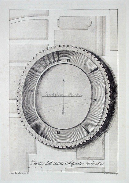 PIANTA DELL' ANFITEATRO FIORENTINO A FIRENZE. Riproduzione tratta da "Viaggio pittorico della Toscana" di Jacopo e Antonio Terreni.