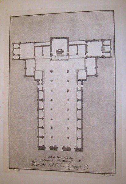 PIANTA DELLA CHIESA DI S.LORENZO A FIRENZE. Riproduzione tratta da "Viaggio pittorico della Toscana" di Jacopo e Antonio Terreni.