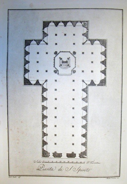 PIANTA DELLA CHIESA DI S.SPIRITO A FIRENZE. Riproduzione tratta da "Viaggio pittorico della Toscana" di Jacopo e Antonio Terreni.