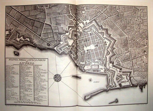 PIANTA DELLA CITTA' E PORTO DI LIVORNO. Riproduzione tratta da "Viaggio pittorico della Toscana" di Jacopo e Antonio Terreni.