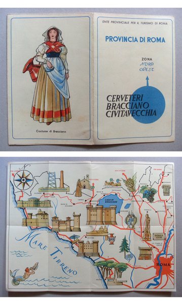Piantina "PROVINCIA DI ROMA Zona Nord - Ovest. Cerveteri - Bracciano - Civitavecchia. Ente Provinciale Turismo di Roma"