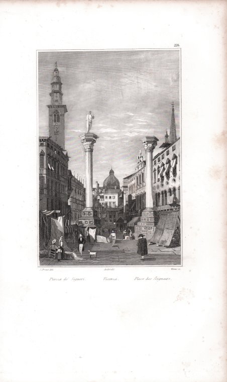 Veduta tratta dal celebre ' L'Italie, la Sicile, les Iles Éoliennes, l'Ile d'Elbe, la Sardaigne, Malte, l'Ile de Calypso etc. D'après les inspirations, les recherches et les travaux de M. M. le Vicomte de Chateaubriand, De Lamartine, Raoul-Rochette, le Comte de Forbin, Piranesi, Mazzara, et de Napoléon, Denon, Saint-Non, Lord Byron, Goethe, Visconti, Cicognara, Lanzi, de Bonstetten, Swinburne, etc. Sites, Monumens, Scènes et Costumes, d'après M.me Haudebourt-Lescot, MM. Horace-Vernet, Granet, Isabey, Ciceri, Mazzara, le Major Light, le Cap. Batty, Cooke, Gell et Gandy, Pinelli, Ferrari, Zucoli, et beaucoup d'autres artistes italiens. Recueillis et publiés par Audot Père, Membre de la Société de Géographie, ' edito a Parigi tra il 1834 ed il 1837 e ristampato a Torino [Giuseppe Pomba e Ca, 1834-1838]. L'opera, in cinque volumi, raccoglie scritti di autori vari, curati da Audot, ed è riccamente illustrata da 324 incisioni su acciaio fuori testo, molte delle quali con accostamento multiplo, per un totale di 473 tavole. Fu notoriamente mastodontico il lavoro cui si sottopose Louis Eustache Audot (1783-1870). View taken from the famous ' L'Italie, la Sicile, les Iles Éoliennes, l'Ile d'Elbe, la Sardaigne, Malte, l'Ile de Calypso etc. D'après les inspirations, les recherches et les travaux de M. M. le Vicomte de Chateaubriand, De Lamartine, Raoul-Rochette, le Comte de Forbin, Piranesi, Mazzara, et de Napoléon, Denon, Saint-Non, Lord Byron, Goethe, Visconti, Cicognara, Lanzi, de Bonstetten, Swinburne, etc. Sites, Monumens, Scènes et Costumes, d'après M.me Haudebourt-Lescot, MM. Horace-Vernet, Granet, Isabey, Ciceri, Mazzara, le Major Light, le Capt. Batty, Cooke, Gell et Gandy, Pinelli, Ferrari, Zucoli, et beaucoup d'autres artistes italiens. Recueillis et publiés par Audot Père, Membre de la Société de Géographie, ' published in Paris between 1834 and 1837 and reprinted in Turin [Giuseppe Pomba e Ca, 1834-1838]. The work, in five volumes, collects the writings of various authors, edited by Audot, and is richly illustrated with 324 engravings on steel outside the text, many of them with multiple combinations, for a total of 473 tables. Louis Eustache Audot (1783-1870) was a notoriously mammoth task. Cfr.