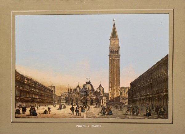 Litografia, mm 370x545, dipinta d’epoca a gouache, margini a tempera nocciola. Ottime condizioni