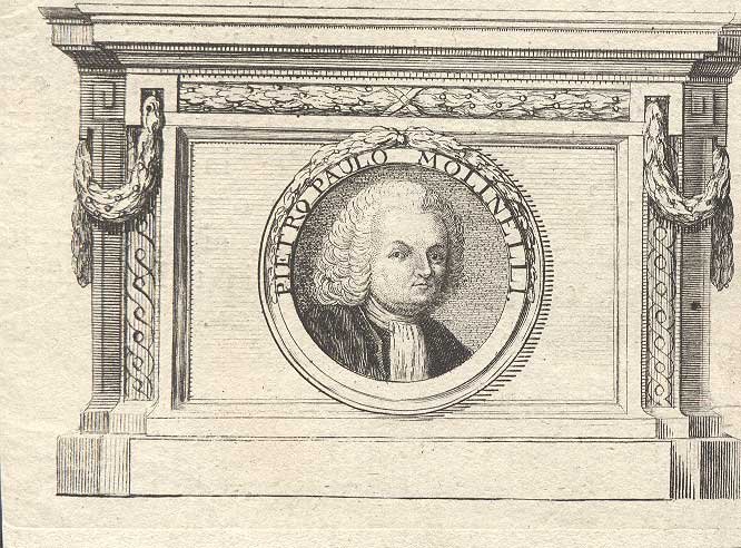 Cm. 11,5x8,5 (al vivo), incisione originale su rame, ritratto del medico Pietro Paolo Molinelli. In buono stato (good copy).