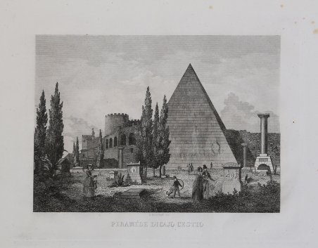 Alessandro Moschetti, secondo quanto si legge in Giovanna Sapori e Sonia Amadio, Il mercato delle stampe a Roma, XVI-XIX secolo (p. 334) fu incisore di architetture con bottega a Roma in via Bocca di Leone, 63. Secondo altre fonti fu invece attivo a Roma prima e Napoli poi fino al 1868. Si dedicò con successo all’intaglio di vedute della città eterna, pubblicate per la prima volta nella Raccolta delle principali vedute di Roma antica e moderna (1843). La raccolta, che comprende un frontespizio figurato e 35 tavole incise in rame dal Moschetti su disegni di Marchi, Ciconnetti e Zolla, "il cui numero può variare da un esemplare all'altro" (cfr. S. Rossetti, n. 7252) è assai ricercata per la pianta di Roma nel 1843 e soprattutto per le vedute arricchite di scene popolari tipiche del folclore civile e religioso dell'epoca. Successivamente le vedute di Moschetti furono ristampate, in numero sempre crescente. Il presente esemplare è tratto dalle 70 Principali vedute di Roma 1861. Proprietà Cesari, reperibile in via Petra n.89. Scudi 6. Incisione in rame, in ottimo stato di conservazione. Alessandro Moschetti, according to Giovanna Sapori and Sonia Amadio, Il mercato delle stampe a Roma, XVI-XIX secolo (p. 334) was an engraver of architecture with a workshop in Rome at Via Bocca di Leone, 63. According to other sources, he was active first in Rome and then in Naples until 1868. He devoted himself successfully to the engraving of views of the Eternal City, published for the first time in the Raccolta delle principali vedute di Roma antica e moderna (1843). The collection, which includes an illustrated frontispiece and 35 plates engraved in copper by Moschetti on drawings by Marchi, Ciconnetti and Zolla, "the number of which may vary from one copy to another" (cf. S. Rossetti, n. 7252) is much sought after for the plan of Rome in 1843 and especially for the views enriched with popular scenes typical of the civil and religious folklore of the time. Subsequently, Moschetti's views were reprinted in increasing numbers. The present example is taken from the 70 Principal Views of Rome 1861. Copper engraving, in excellent condition. Cfr.