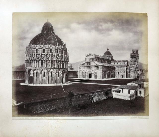 Edizioni Brogi, primi anni del XX secolo. Fotografia in b/n, cm 20 x 25,3 (la sola parte fotografica) più i margini del consueto cartoncino su cui è applicata. Classica veduta della piazza ma con ben visibile una costruzione contadina d'inizio secolo. Buono stato.