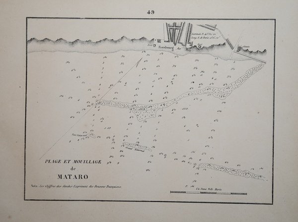 Piano nautico tratto dal raro portolano "Recueil des Plans des Ports & Rades de la Mer Méditerranée de la Mer Noire & de la Mer d'Azof" edito a Marsiglia da Joseph Maistre nel 1862 e basato sulle carte nautiche dle Depote de la Marine francese. Litografia, in buono stato di conservazione. Nautical chart taken from the rare pilot "Recueil des Plans des Ports & Rades de la Mer Méditerranée de la Mer Noire & de la Mer d'Azof" published in Marseille by Joseph Maistre in 1862 and based on the nautical charts of the French Depote de la Marine.Lithograph, very good condition. Cfr.