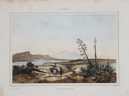 Veduta tratta da L'Italie pittoresque [.]. Gravures sur acier d'après les dessins de madame D'Haubecourt-Lescot, de Mm. le Comte de Forbin, Granet, Deveria… edita a Parigi dal 1834 al 1836. Bella guida sull'Italia, pubblicata per la prima volta nel 1834, composta dai racconti di personaggi come Norvins, Nodier, Dumas, Berlioz (autore del capitolo Voyage musicale) e altri con le belle incisioni in acciaio da disegni di madame D'Haubecourt-Lescot, del conte de Forbin, Granet, Deveria ecc. Incisione in rame, finemente colorata a mano, in ottimo stato di conservazione. View taken from L'Italie pittoresque [.]. Gravures sur acier d'après les dessins de madame D'Haubecourt-Lescot, de Mm. le Comte de Forbin, Granet, Deveria. published in Paris from 1834 to 1836. A beautiful guide to Italy, first published in 1834, consisting of the accounts of such personalities as Norvins, Nodier, Dumas, Berlioz (author of the chapter entitled Voyage musicale) and others with beautiful steel engravings from drawings by Madame D'Haubecourt-Lescot, the Comte de Forbin, Granet, Deveria, etc. ' Copperplate, finely hand-coloured, in excellent condition. Cfr.
