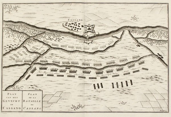 Plan de la bataille de Cassano- (titolo ripetuto in olandese).