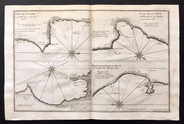 Plan de la Rade du Tuellé dans le Golfe de la Napoulle / Plan de la Rade de Bacon au sud d'Antibes a une bonne mille / Plan de la Rade de Sestri de Levant sur la coté de Genes.