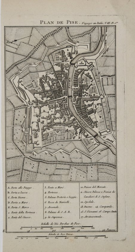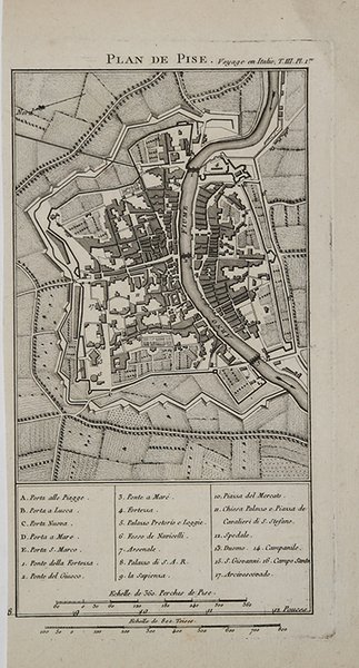 Pianta della città tratta dal "“Voyage en Italie contenant l’histoire les anecdotes les plus singulieres de l’Italie, sa description; les usages, le gouvernement, le commerce, la littérature, les arts, l’histoire naturelle, les antiquités . par m. De La Lande" edito a Parigi nel 1786.Incisione in rame, in ottimo stato di conservazione. Pianta della città tratta dal "“Voyage en Italie contenant l’histoire les anecdotes les plus singulieres de l’Italie, sa description; les usages, le gouvernement, le commerce, la littérature, les arts, l’histoire naturelle, les antiquités . par m. De La Lande" edito a Parigi nel 1786.Incisione in rame, in ottimo stato di conservazione. Cfr.