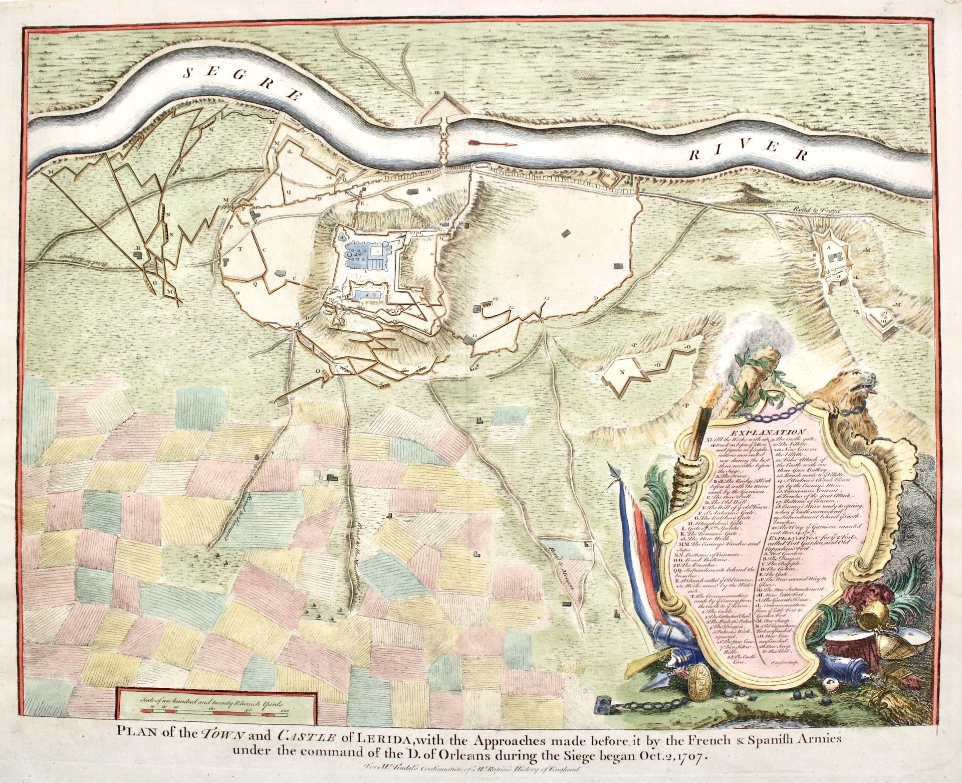 Plan of the town and Castle of Lerida, with the approaches made before it by the french & spanish armies under the command of the D. Of Orleans during the siege begsan Oct 2, 1707.<BR><BR><BR>
