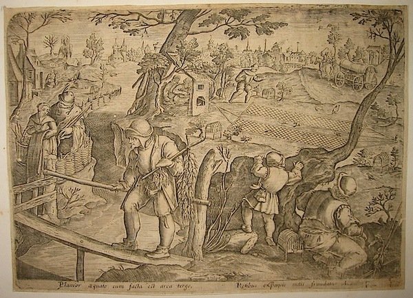 Incisione originale su rame (cm. 28x20). Margini rifilati e verso del foglio rinforzato. Due minuscoli forellini ma, nel complesso, buon esemplare. Molto rara.