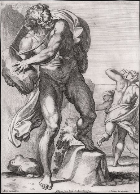 Polifemo scaccia un macigno contro il pastore Aci