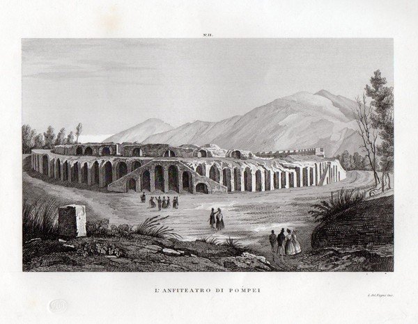 POMPEI - "L'Anfiteatro" Interessante documentazione degli scavi effettuati fino al 1845 e dello stato degli edifici.