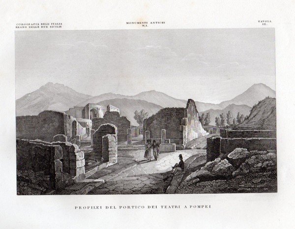 POMPEI - "Propilei del Portico dei Teatri" Interessante documentazione degli scavi effettuati fino al 1845 e dello stato degli edifici.