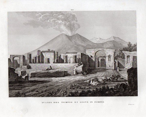 POMPEI - VESUVIO – “Avanzi del Tempio di Giove� bello scorcio con il Vesuvio nello sfondo.