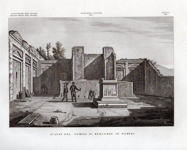 POMPEI – “Avanzi del Tempio di Mercurio� Interessante documentazione degli scavi effettuati fino al 1845 e dello stato degli edifici.