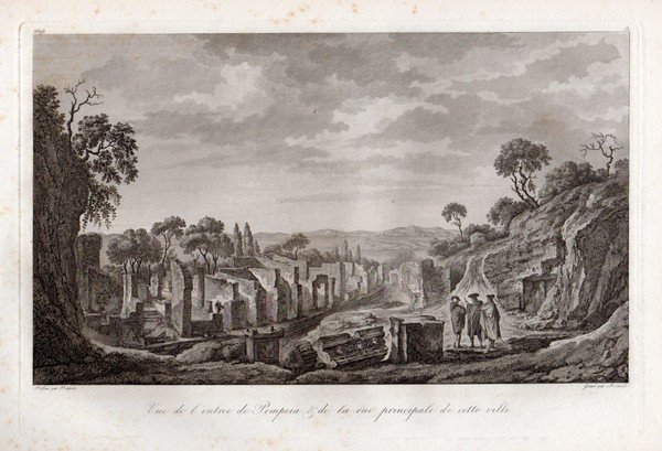POMPEI – “Vue de l’entree de Pompeia & de la rue principale de cette ville.� ampia e suggestiva immagine delle rovine