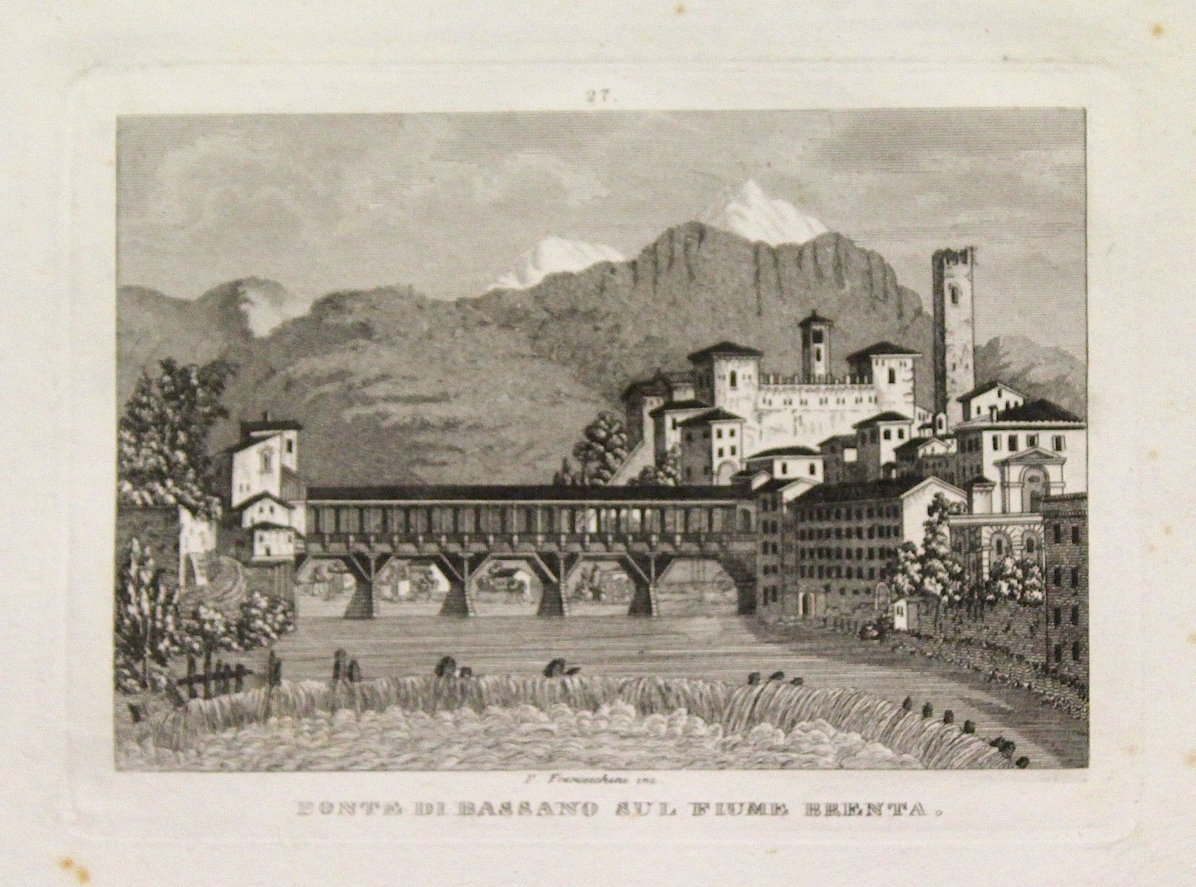 Incisione in rame di F. Franceschini,mm 97x136. Bell'esemplare con piccolo alone all'angolo inf. dx.