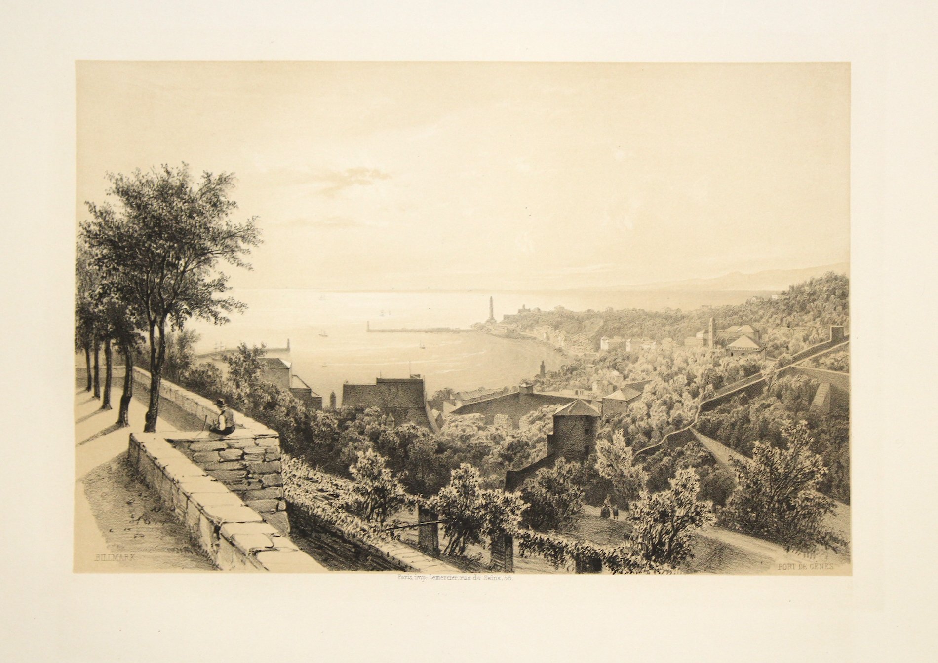 Litografia in seppia con veduta generale panoramica dalle colline. Mm 186x282, tratta dall'albo" Pittoresk resetur fran Stockolm nel 1852. La veduta è firmata in basso a s.:"Billmark" e sotto nel centro: " Paris, imp. Lemercier rue de Sein, 55". Ottimo esemplare marginoso.<BR><BR>