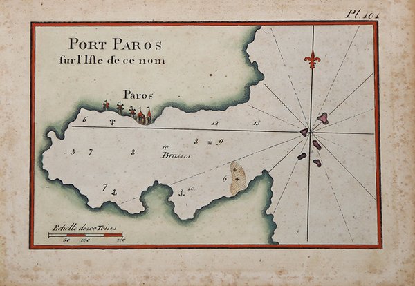 Piano nautico tratto dal " Recueil des principaux plans des ports & rades de la Méditerranée" di Josepgh Roux, pubblicato per la prima volta a Marsiglia nel 1764 e successivamente ristampato - ampliato - a Genova da Yves Gravier con il titolo "Recueil de 163 principaux plans des ports et rades de la Mediterranée" (1804).Ulteriore edizione dell'opera, con il titolo "Plans des ports ed des rades de la Mer Méditerranée." è stampata a Livorno da Carlo Tesi nel 1858. Incisione in rame, finemente acquarellata a mano, in ottimo stato di conservazione. First published in the "Recueil des principaux plans des ports et rades de la Mer Mediterranee", 1764, this nice nautical chart is taken from the rare "Plans des ports ed des rades de la Mer Méditerranée." published in Leghorn by Carlo Tesi, 1858. Copperplate with fine colouring, in very good condition. Cfr. Zacharakis C. G. - A Catalogue of Printed Maps of Greece 1477 - 1800 (2009), n.3031.
