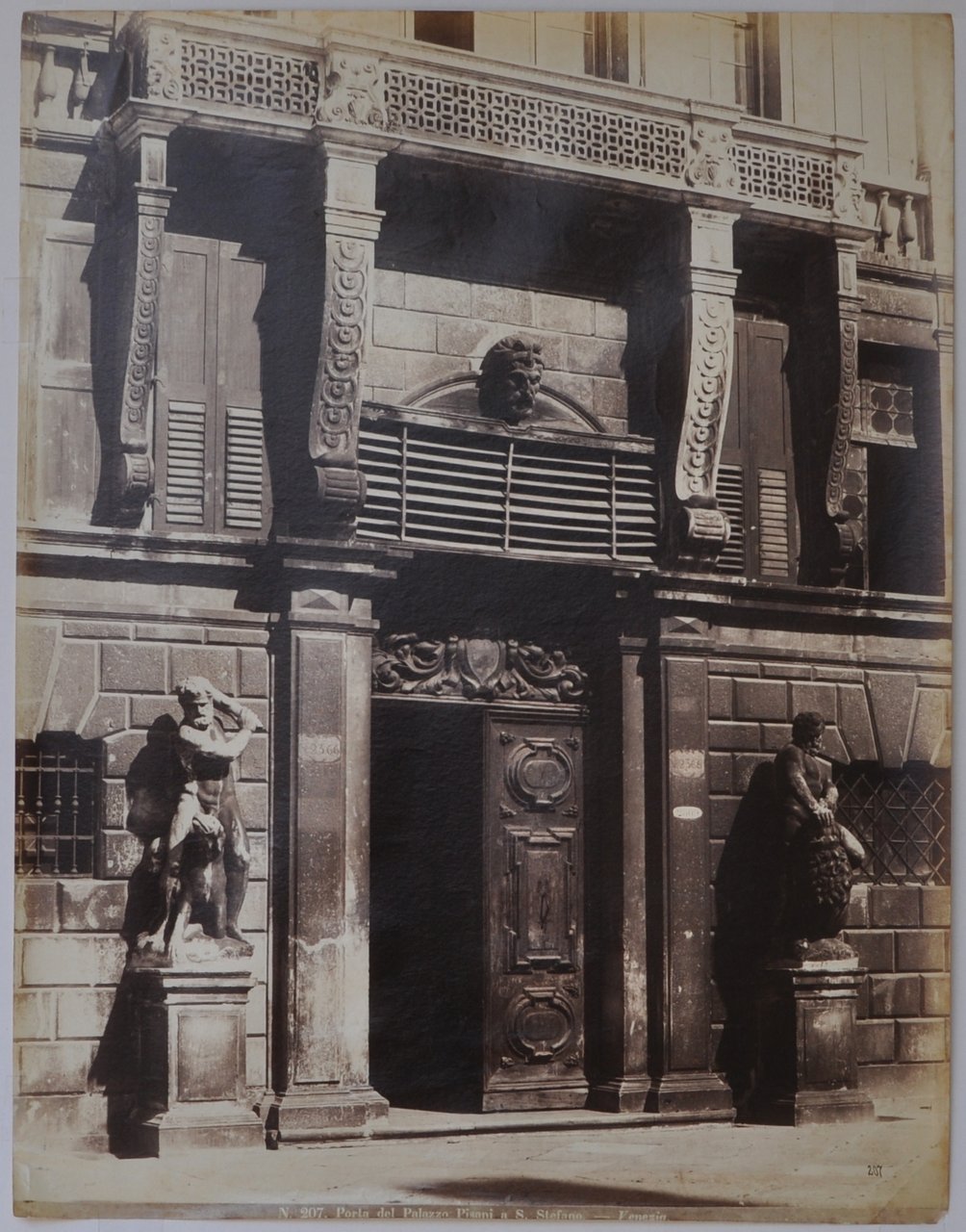 Fotografia originale alla gelatina ai sali d'argento di mm 351 x 266. In basso la dicitura bianca su sfondo grigio "N 207 Porta del Palazzo Pisani a S. Stefano - Venezia". Bella fotografia di buone dimensioni, in ottimo stato di conservazione, di cui purtroppo non siamo riusciti ad identificare l'autore.
