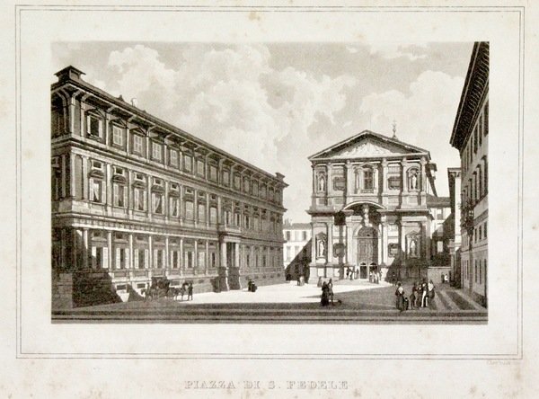 Litografia, mm 275x203 su foglio di mm 435x290; in basso a sinistra: "Chapuy del./Paris pubblié par A. Hauser boul. des Italiens, 11; in basso a destra: "Imp. Lemercier Bernard et C". Bella veduta del Duomo di Parma<BR>Tratta da una corposa raccolta di vedute dal titolo "Le Moyen Monumental et Archéologique" eseguita su proprio disegno da Chapuy e litografata da A. Guesdon. Bell'esemplare. Timbrino editoriale a secco in basso sotto il titolo. Chapuy architetto del Corpo di Genio francese a causa del suo bonapartismo, dopo il 1815 dovette orientarsi verso una nuova attività. Grazie alle sue abilità grafiche-artistiche si dedicò alle illustrazioni di paesaggi e monumenti, lavorando su commissione dapprima per editori che legati al campo dell'archeologiae, dopo il 1823 alle pubblicazioni per i libri di viaggio. <BR>