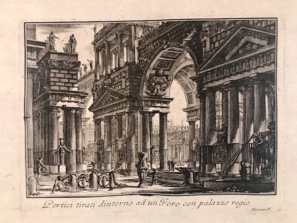 Incisione originale su rame (cm. 21,5x16 più ampi margini bianchi) tratta dalla rara opera ‘Opere varie di Architettura, Prospettive, Grotteschi, Antichità sul gusto degli antichi Romani.’. Magnifica prova impressa su carta vergellata. Esemplare in eccellente stato di conservazione. Focillon, n. 127; Wilton-Ely, n. 48; Ficacci, n. 407. Questa incisione, alla pari di ogni altra frutto del lavoro giovanile presente nelle ‘Opere varie’, ben evidenzia in maniera particolare le doti di inventiva e di fantasia che avrebbero caratterizzato tutta la produzione artistica di Piranesi.