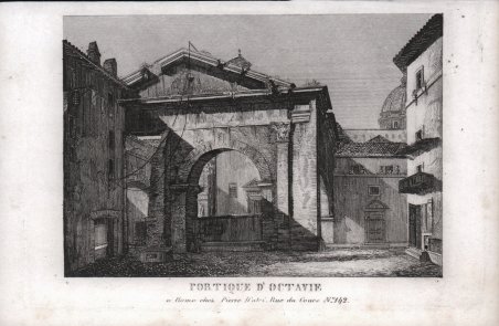 Veduta tratta dalla ' Nuova Raccolta delle principali Vedute di Roma Antica e Moderna con le ruine della Guerra disegnate dal vero L’Anno 1849, Presso Pietro Datri / Chez Pierre Datri, 1849. ' La raccolta contiene, oltre alle vedute di Roma monumentale, anche alcune vedute di Grottaferrata, Albano, Ponte Lucano, Tivoli. In fine, sono poste 7 incisioni raffiguranti scene e rovine della guerra contro le truppe francesi nel 1849, incise dal pittore Antonio Bertaccini. ' Pietro Datri o Pierre d’Atri fu un fiorente editore attivo a Roma tra il 1840 e il 1867; si dedicava principalmente alla produzione di album di vedute destinati al collezionismo del Grand Tour. ' Acquaforte, in ottimo stato di conservazione. View taken from the ' Nuova Raccolta delle principali Vedute di Roma Antica e Moderna con le ruine della Guerra disegnate dal vero L’Anno 1849, Presso Pietro Datri / Chez Pierre Datri, 1849. In addition to views of monumental Rome, the collection contains views of Grottaferrata, Albano, Ponte Lucano, and Tivoli. At the end are placed 7 engravings depicting scenes and ruins of the war against French troops in 1849, engraved by painter Antonio Bertaccini. Pietro Datri or Pierre d'Atri was a flourishing publisher active in Rome between 1840 and 1867; he devoted himself mainly to the production of albums of views intended for Grand Tour collecting. Etching, in very good condition. Cfr.