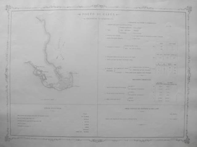 Da “Album dei porti di I, II e III classe illustrato dalle notizie nautiche e commerciali d’ogni porto e della statistica delle opere esistenti e di quelle eseguite nel decennio 1861 al 1870”, Roma, Civelli, s.d. (ma 1872 ca.), litografia, b/n, cm 44 x 57,5 (il foglio). Grande figura del porto descritto. Esemplare in ottimo stato di conservazione. Rara.