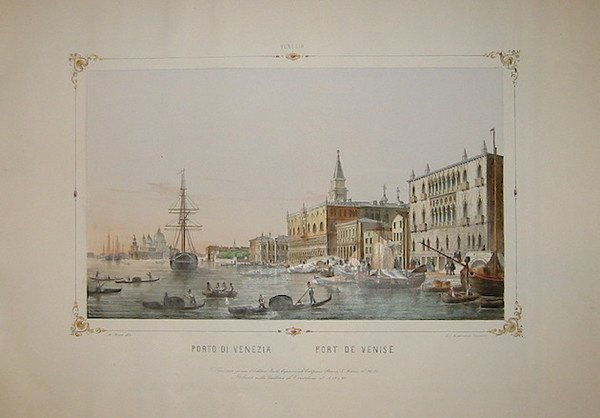 Litografia originale (cm. 33x21 più ampi margini bianchi) edita dalla Lit. Ripamonti Carpano. Bella acquarellatura d’epoca rifinita con chiara d’uovo. Ottimo esemplare. Non comune.