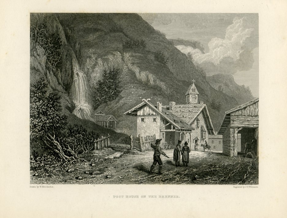 Incisione di dimensioni 14x20 cm. Condizioni : USATO - Stato : Buono, ordinari segni del tempo. Altre note : Veduta raffigurante una stazione di posta presso il passo del Brennero, con L'Isarco sulla sinistra. L'autore, il paesaggista inglese William Brockedon (1787-1854), non trascura di rappresentare l'animazione del luogo, storico punto di passaggio per chi viaggia verso nord.