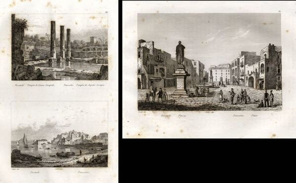 POZZUOLI - 1) Tempio di Giove Serapide. Due inc. su unica tavola, f. 10,5x7,3 ca. cad. - Pozzuoli. - Piazza. f. 15,8x10,7.