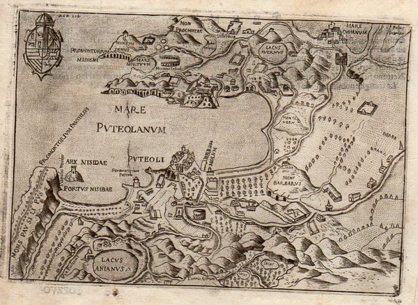 POZZUOLI - Mare Puteolanum". Bellissima veduta a volo d'uccello di Pozzuoli, con i monti circostanti e il mare.