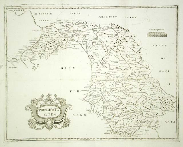 Rara carta geografica della Campania meridionale dalla penisola sorrentina al Golfo di Nicastro