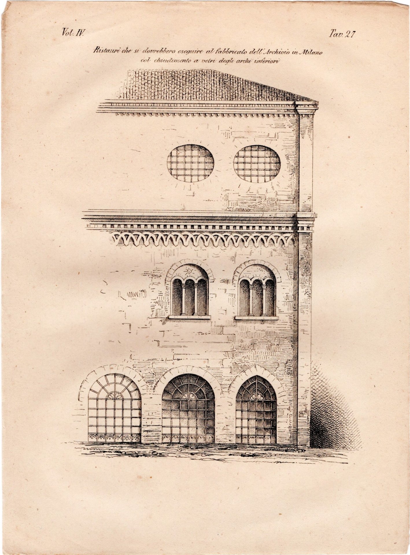 Progetto per chiudere con vetrerie gli archi del Palazzo dell'antico Pretorio 1857 Piazza del Mercanti o Palazzo della Ragione.