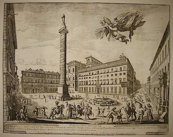 Incisione originale su rame (cm. 49x38 più ampi margini). Seconda edizione pubblicata da Matteo Gregorio de Rossi. Ottimo esemplare. Molto rara.