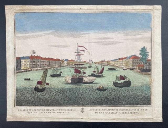 Prospectus de Neva, Orientem Versus Aditus que in Galeram Petroburgae / Vista de la Neva, Hazia el Oriente, entre el Lugar de las Galeras a Petersbourg.