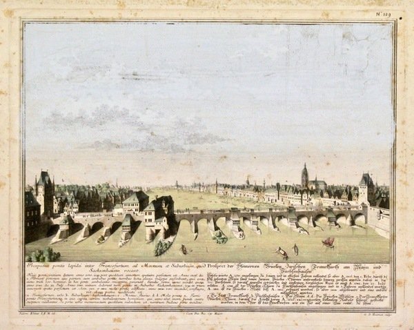 Prospectus pontis lapidei inter Francofortum ad Moenum et suburbium quod Sachsenhausen.