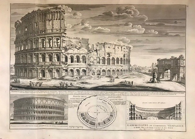 Prospetto dell’Anfiteatro Flavio, fabricato da Vespasiano Imperatore, terminato, e dedicato da Tito suo figliolo, detto volgarmente il Colosseo dallo smisurato colosso di Nerone che gli era vicino su l’ingresso della Via Sagra