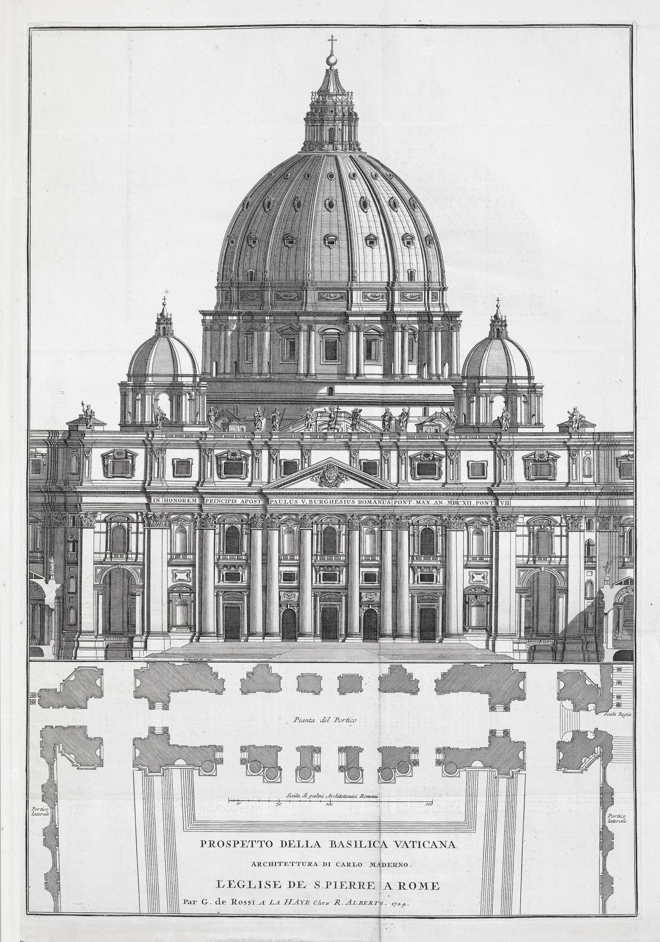 Prospetto della Basilica Vaticana. Architettura di Carlo Maderno par G. De Rossi (con) Veue de l’Eglise de S.Pierre a Rome du costé du midy par G. De Rossi (con)