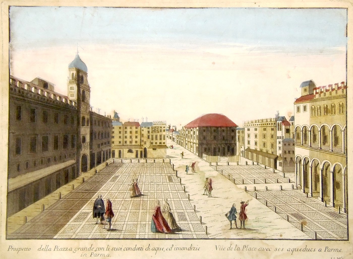 Prospetto della Piazza grande con li suoi condotti di aque, ed imondizie in Parma.