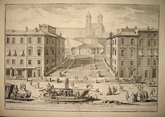 Prospetto della Scala, che da Piazza di Spagna conduce alla Chiesa e Convento della SS.ma Trinità, sul Monte Pincio principiata sotto il glorioso Pontificato di’Innocenzo XIII, e terminata sotto la S.M. di Papa Benedetto XIII. Architettura di Francesco de Santis