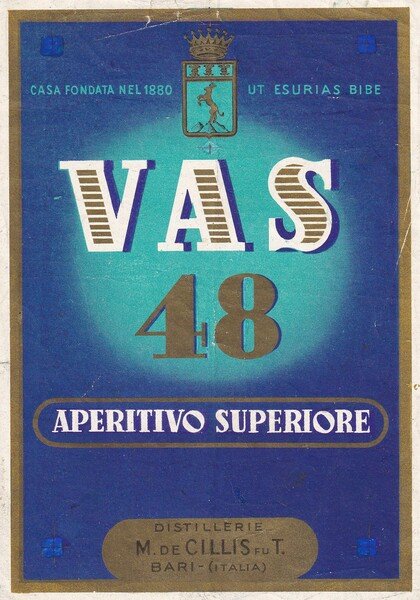 Prova di stampa a serigrafia Etichetta (liquore/vino) VAS 48 Aperitivo Superiore De Cillis - Bari 1948