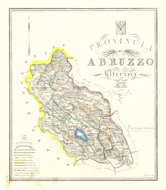 Carta geografica dell' Abruzzo Ulteriore II° confini colorati all'epoca