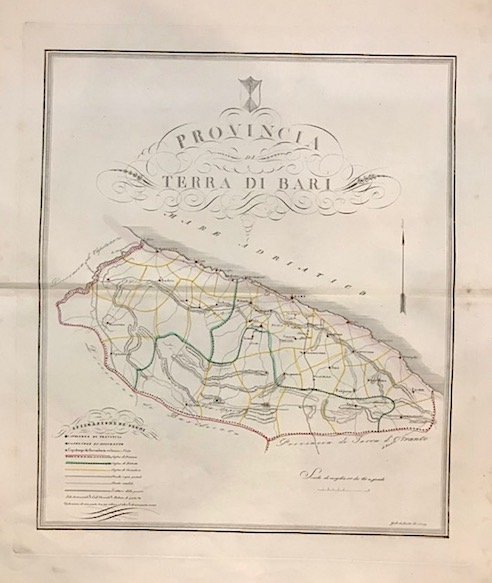 Carta geografica originale (cm. 35,5x41 più ampi margini bianchi) tratta da ‘Atlante Corografico del Regno delle due Sicilie’. Coloritura d’epoca dei contorni. Esemplare in ottimo stato di conservazione. Non comune.
