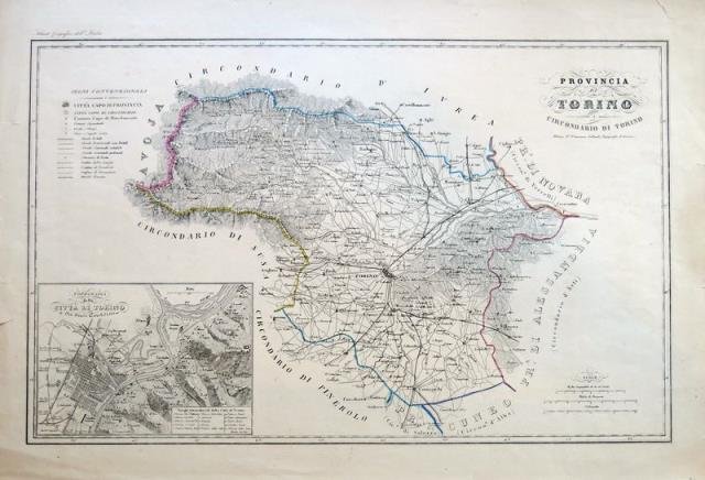 - Cartografia italiana - (Piemonte, Provincia e Circondario di, Torino)