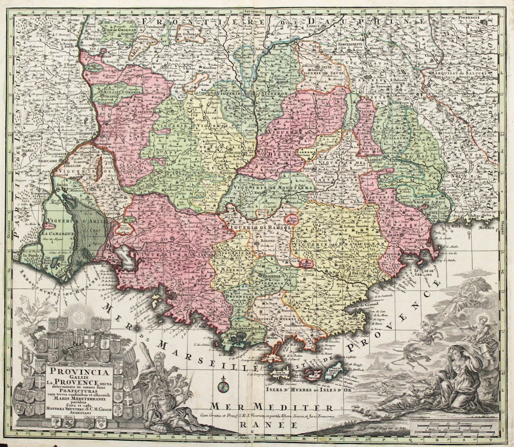 Provincia Gallis La Provence dicta determinate in omnes suas praefecturas cum terries confinibus et alluentib. Maris Mediterraneipartibus cura et caelo.